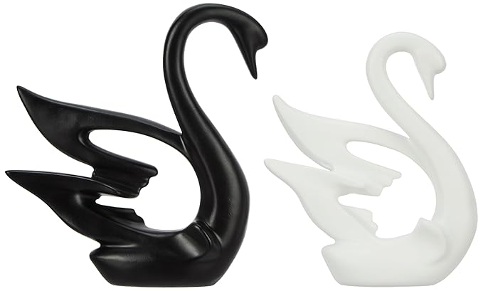 amazon basics Lavish Modern Home Décor Swan Couple | Matte Finish Ceramic Figurines (Set of 2Pc, White and Black)