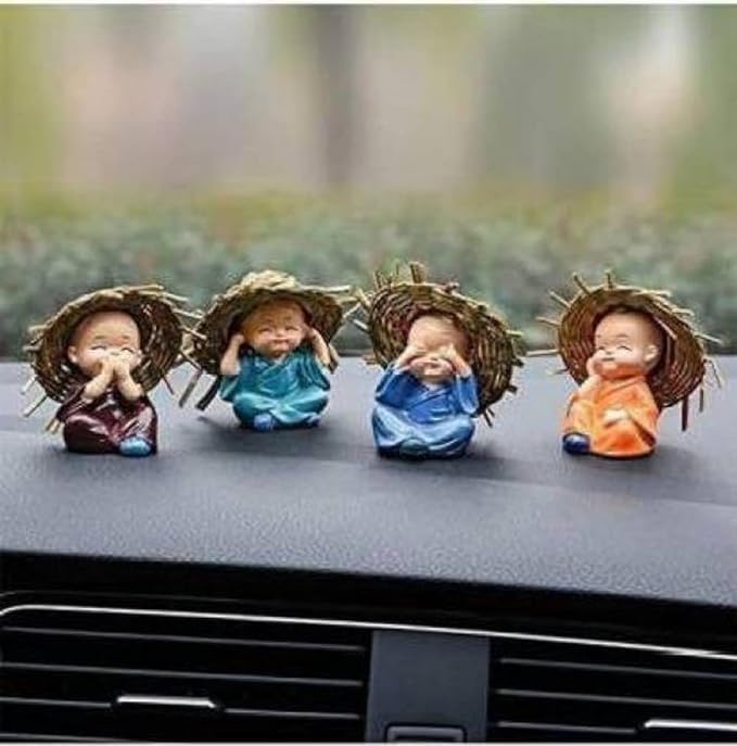 eCraftIndia Set of 4 Resin Buddha Monk Statue with Hat| Think No Evil Speak No Evil Hear No Evil See No Evil| Buddha Statues for Home Decor Living Room Office Car Dashboard Showpiece Gift for Birthday