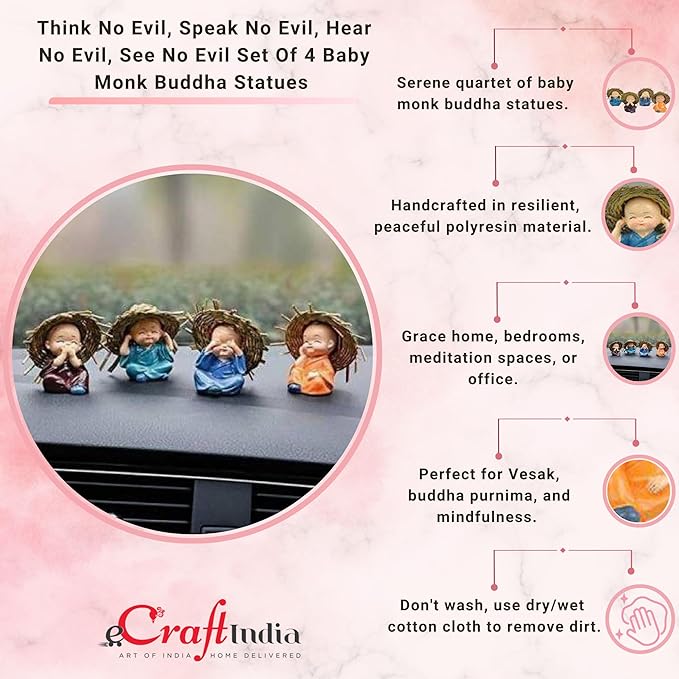 Be the first to review “eCraftIndia Set of 4 Resin Buddha Monk Statue with Hat| Think No Evil Speak No Evil Hear No Evil See No Evil| Buddha Statues for Home Decor Living Room Office Car Dashboard Showpiece Gift for Birthday”