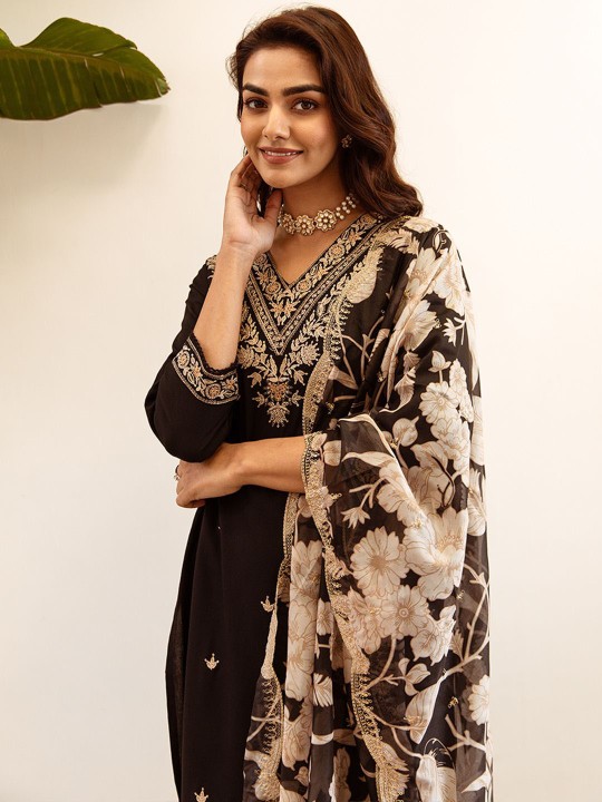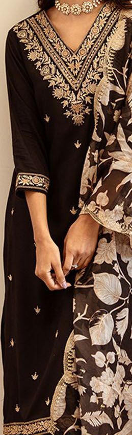 Black embroidered Kurta with Salwar with dupatta