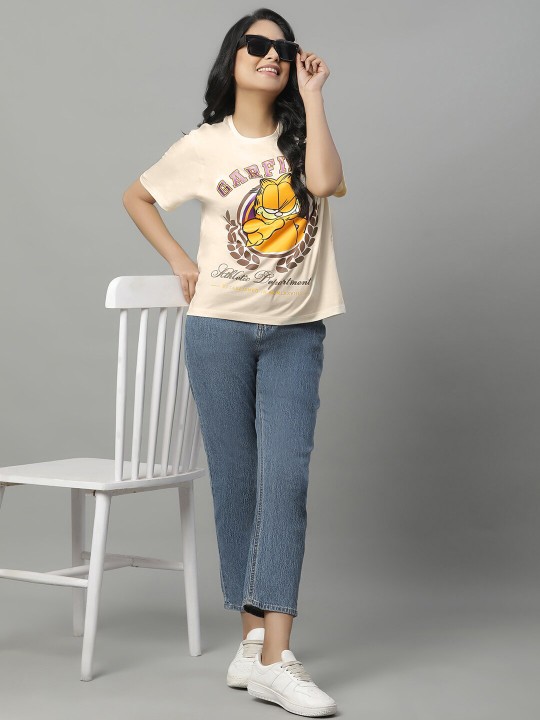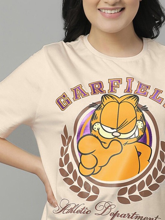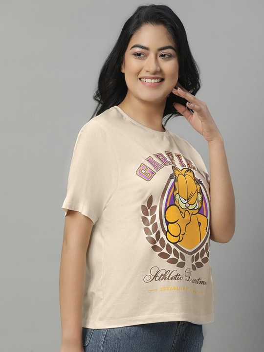 - Peach coloured & brown t-shirt for women
