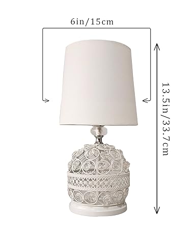 Modern Small Crystal Table Lamp,Contemporary Bedroom Bedside Nightstand Lamp,Morden Minimalist, Desk Globe Lamp for Living Room Girls Kids Room, White Fabric Shade (White)