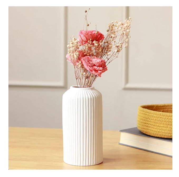 SPHINX Ribbed Pipe Ceramic Vase, Flower Vase, Pampas Grass Vase, Vase for Money Plant Live Plants, Vase Home Decor Centrepiece Decor for Home, Office, or Gifts VASE ONLY NO Flowers- (White, 6 Inch)