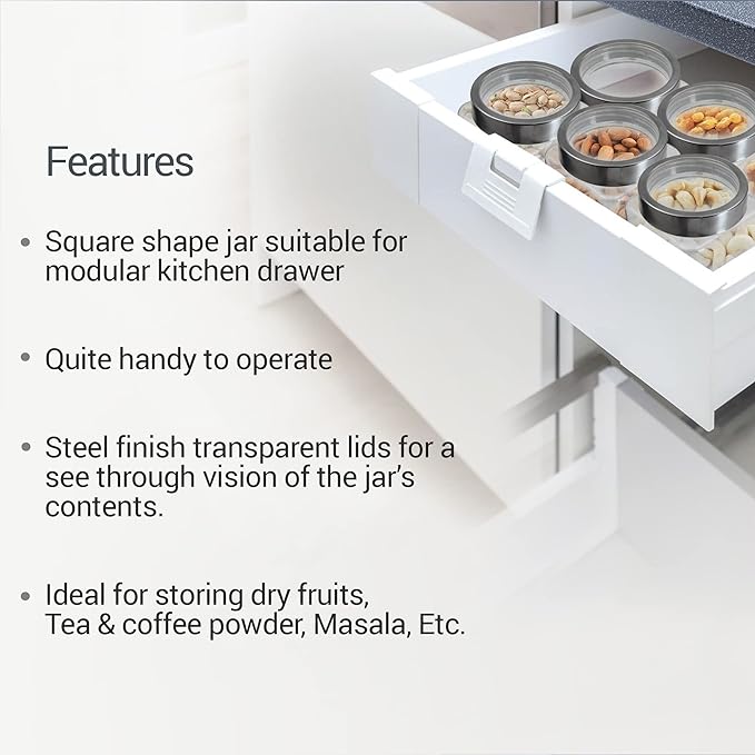 - Small Storage: Each jar holds 180 ml, making them suitable for small quantities of food, spices, or other items. Neat and Tidy: Stacking jars can help create a more organized and visually appealing storage solution. It keeps your items contained and reduces clutter.