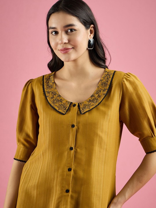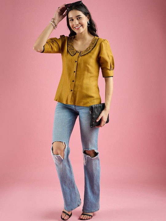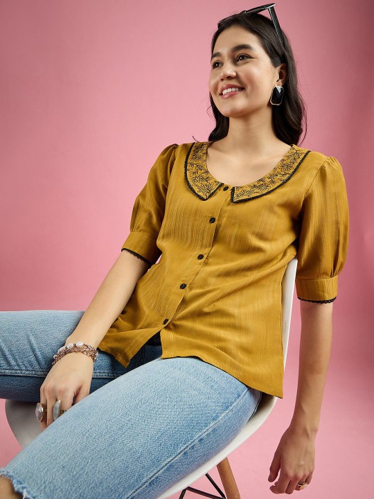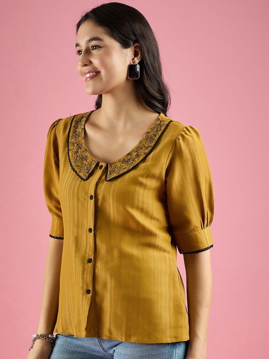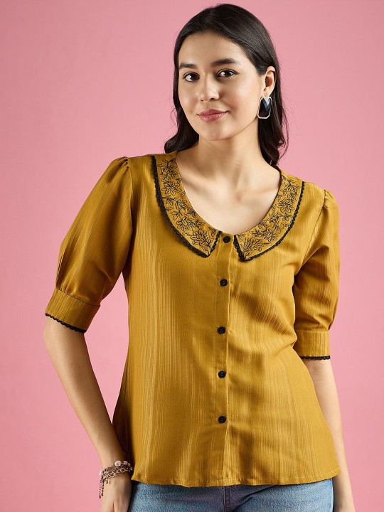 Women Embroidered Peter Pan Collar Shirt Style Top