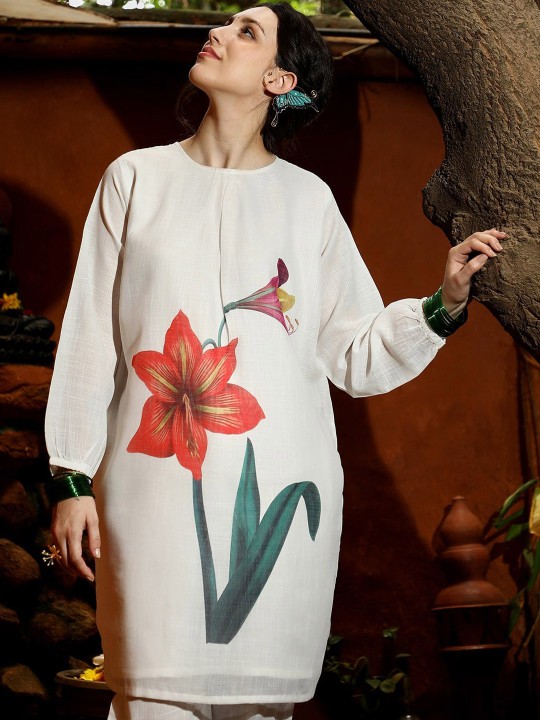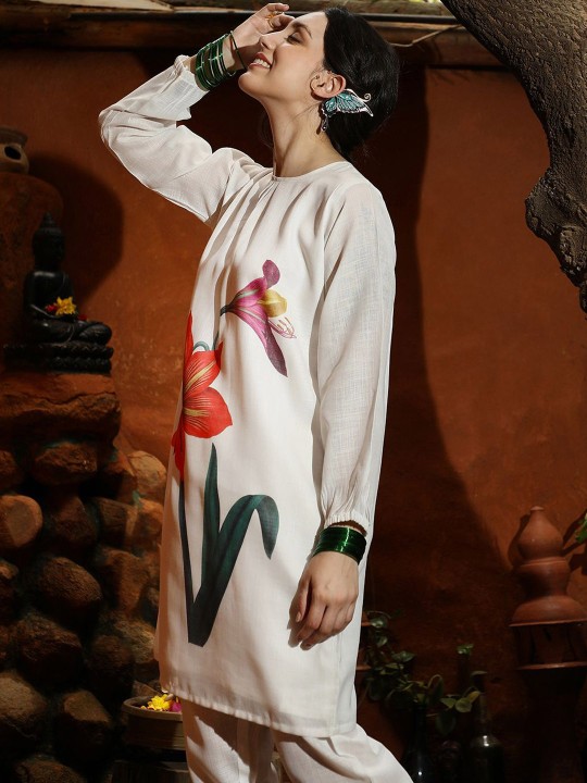 White printed Kurti with Trousers