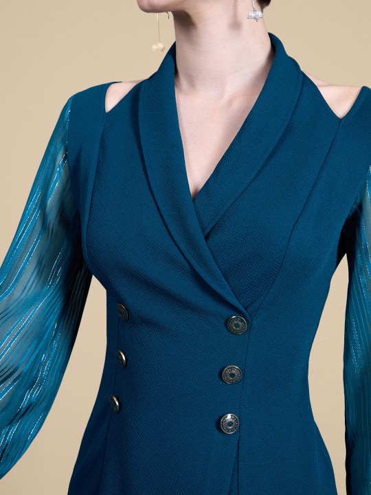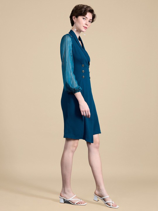 - Teal solid blazer dress dress
