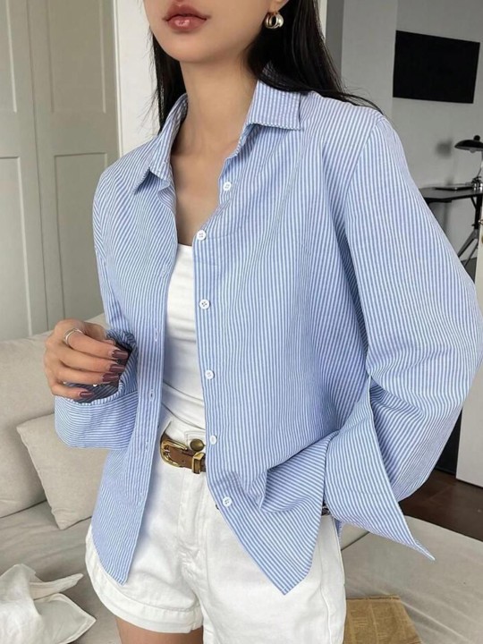 Blue & White opaque casual shirt for women