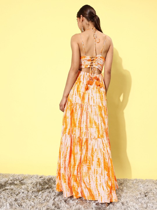 - Yellow and white abstract dyed maxi dress